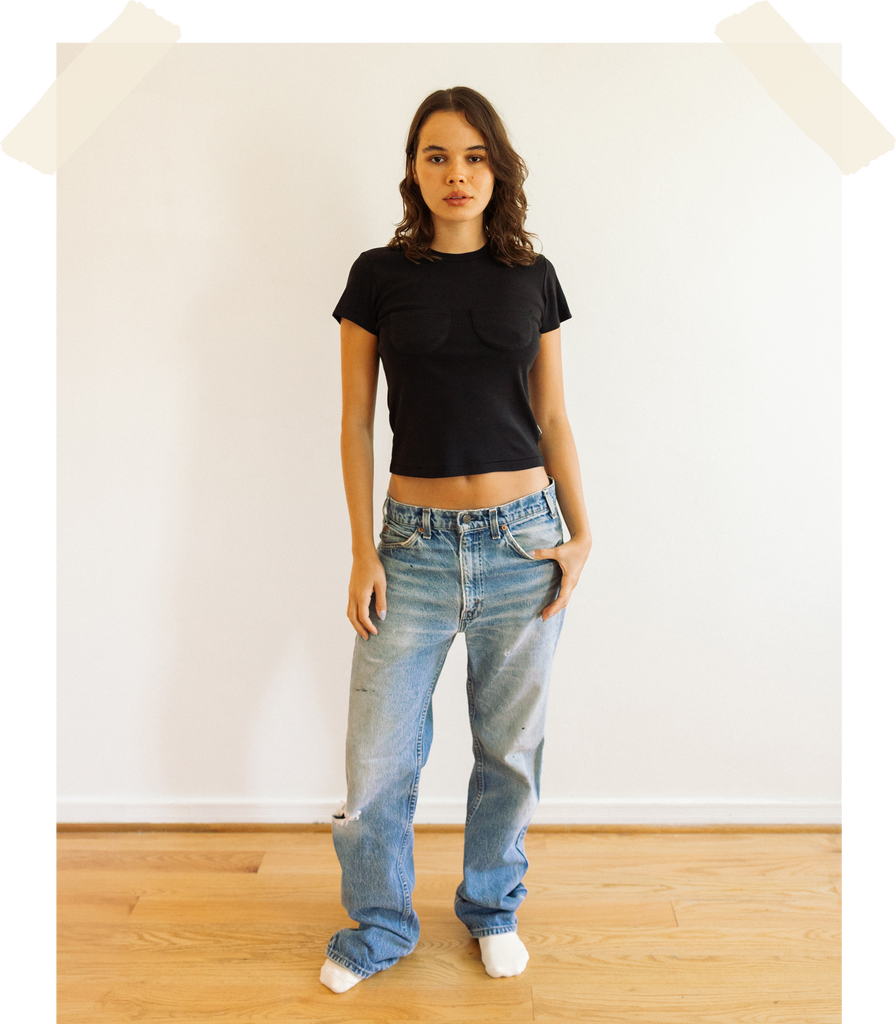 JESS IS WEARING A SIZE SMALL. HER MEASUREMENTS ARE: